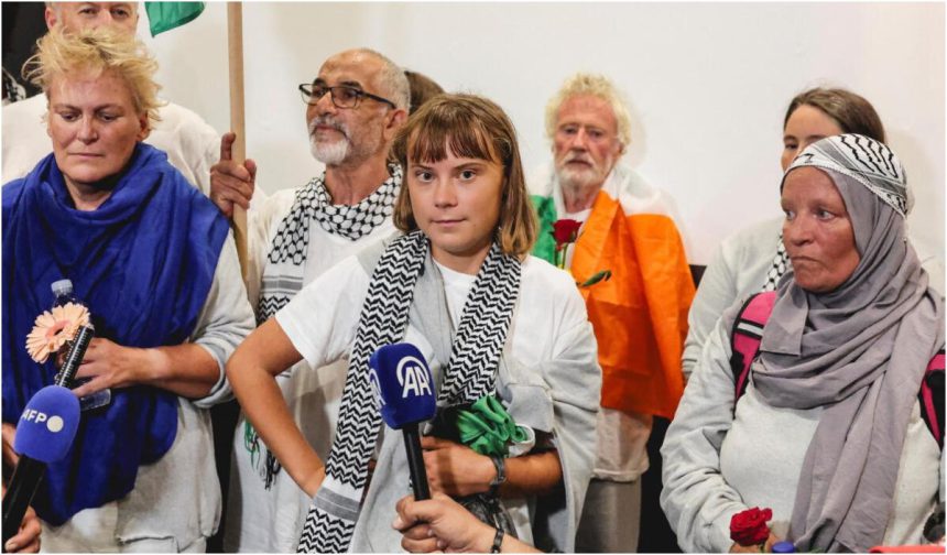பாலஸ்தீனத்தின் காசா பகுதி வாழ் மக்களுக்கு வேண்டிய நிவாரண உதவி பொருட்களுடன் பார்சிலோனாவில் இருந்து 50 படகுகளில் சூழலியல் செயற்பாட்டாளர் கிரெட்டா தன்பெர்க் உள்பட சுமார் 500 செயற்பாட்டர்கள் கடந்த ஆகஸ்ட் மாத இறுதியில் பயணம் மேற்கொண்டனர். இந்தப் படகுகளை இஸ்ரேல் கடற்படையினர் இடைமறித்தனர். அதிலிருந்தவர்கள் சிறைப்பிடிக்கப்பட்டனர்.