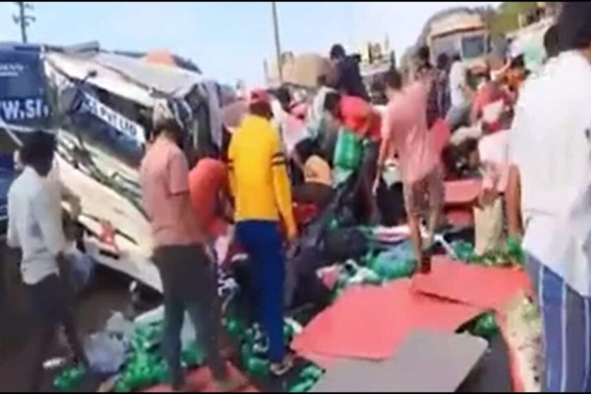 விபத்தில் சிக்கிய ஓட்டுநரை காப்பாறாமல், வாகனத்தில் இருந்த கூல்ட்ரிங்க்ஸ் பாட்டில்களை அள்ளிச்சென்ற பொதுமக்களால் அதிர்ச்சி.