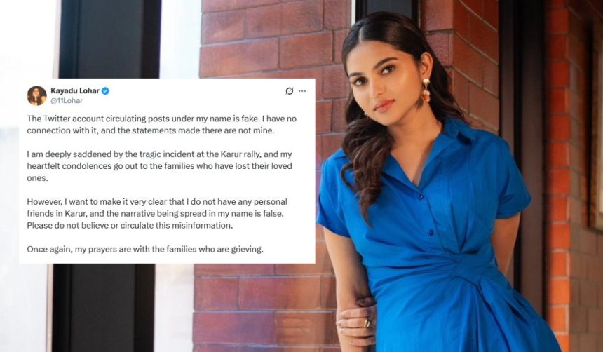கரூர் சம்பவம் குறித்த சர்ச்சை பதிவு போலியானது என்று கயாடு லோஹர் விளக்கமளித்துள்ளார்.