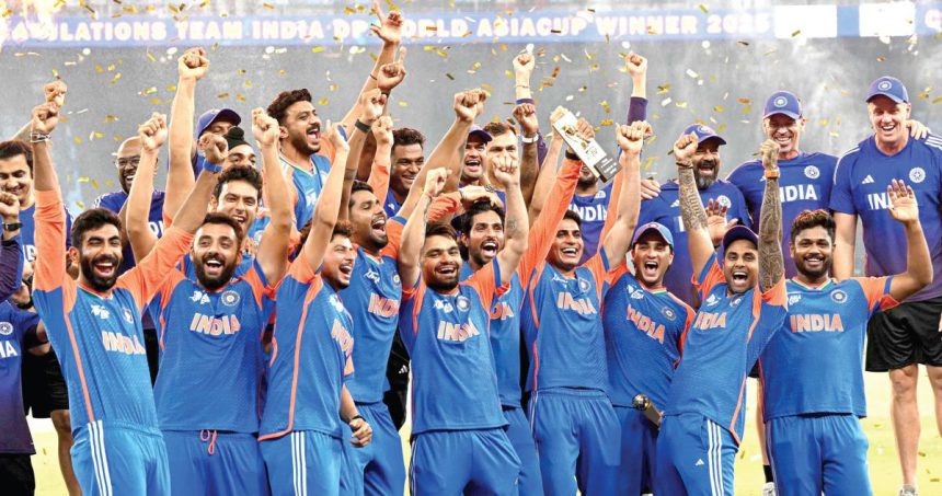 துபாய்: ஆசிய கோப்பை டி 20 கிரிக்கெட் தொடரின் இறுதிப் போட்டியில் நேற்று முன்தினம் இந்திய அணி 5 விக்கெட்கள் வித்தியாசத்தில் பாகிஸ்தானை வீழ்த்தி 9-வது முறையாக சாம்பியன் பட்டம் வென்றது.