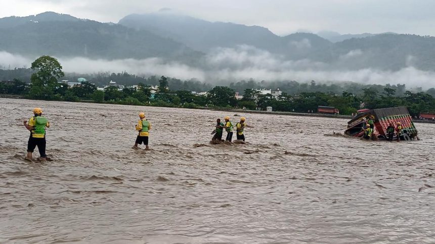 உத்தராகண்ட்டின் டேராடூனில் இன்று காலை மேகவெடிப்பு காரணமாக கனமழை பெய்தது. டேராடூனின் பவுண்டா எனும் பகுதியில் உள்ள தேவபூமி கல்வி நிறுவனத்தில் பயிலும் 200 மாணவர்கள் வெள்ளத்தில் சிக்கிக் கொண்டனர். இது குறித்த தகவல் அறிந்ததும் சம்பவ இடத்துக்கு விரைந்து வந்த மாநில பேரிடர் மீட்புப் படையினர், மாணவர்களை பத்திரமாக மீட்டனர். தொடர் கனமழை காரணமாக இப்பகுதியில் பல்வேறு சாலைகள், வீடுகள் உள்ளிட்ட கட்டமைப்புகள் கடும் சேதமடைந்தன.