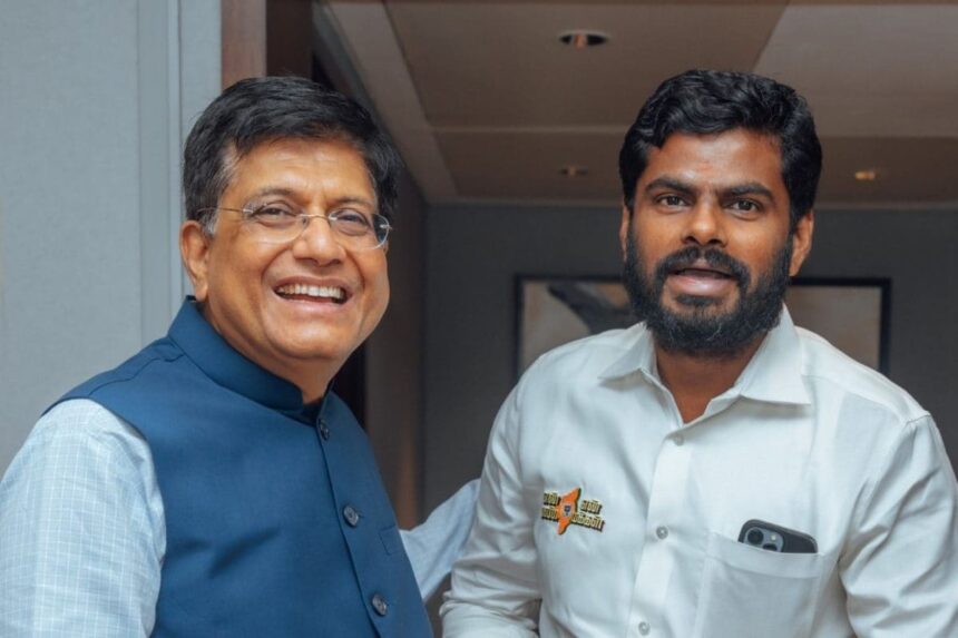 பாஜக வேட்பாளர் தேர்வுக்காக சென்னை வந்துள்ள மத்திய அமைச்சர் பியூஷ் கோயல், அண்ணாமலைக்கு அவசர அழைப்பு விடுத்துள்ளார். இதனையடுத்து அவர் ஹெலிகாப்டரில் சென்னை விரைந்துள்ளார்.