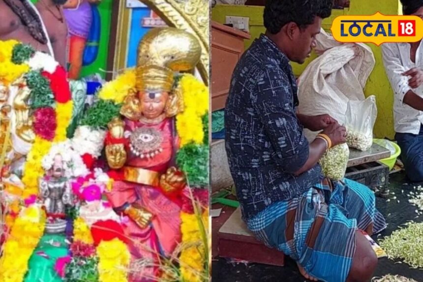 உலக புகழ்பெற்ற மதுரை சித்திரைத் திருவிழா நாளை கொடியேற்றத்துடன் கோலாகலமாகத் தொடங்க உள்ள நிலையில் இன்று பூ மார்க்கெட்டில் மல்லிகை பூவின் விலை மளமளவென உயர்ந்துள்ளது.