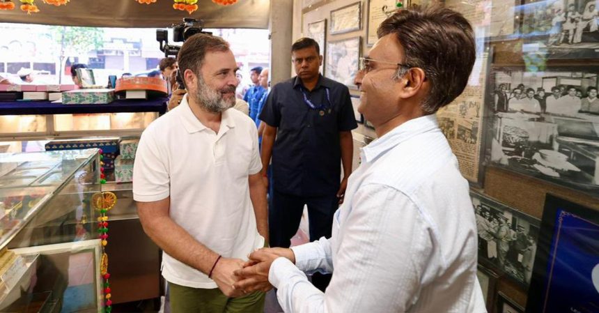 இந்த கடைக்கு பல ஆண்டுகளாக காந்தி குடும்பத்தினர் வாடிக்கையாளர்களாக உள்ளனர். இந்த ஆண்டு தீபாவளிக்காக இனிப்புகள் வாங்க அங்கு சென்ற ராகுல் காந்தி தன் கையாலேயே சில இனிப்பு வகைகள் செய்தார்.
