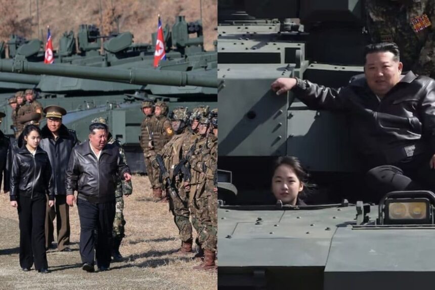 கிம் ஜாங் உன் மற்றும் அவரது மகள் ஜூ ஏ, நவீன பீரங்கிகள், டிரோன் ஆயுதங்களுடன் போர் ஒத்திகையில் ஈடுபட்ட காட்சிகள் வெளியீடு.
