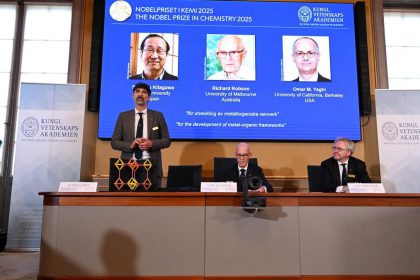 ஸ்டாக்ஹோம்: உலோக-கரிம கட்டமைப்பை உருவாக்கிய ஜப்பான், ஆஸி மற்றும் அமெரிக்க ஆராய்ச்சியாளர்கள் 3 பேருக்கு வேதியியலுக்கான…